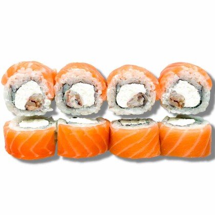Креветка, лосось, огурец, сыр кремета, рис, нори