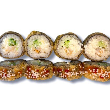 Снежный краб (имитация), огурец, сыр, рис, нори, остро-сладкий соус чили